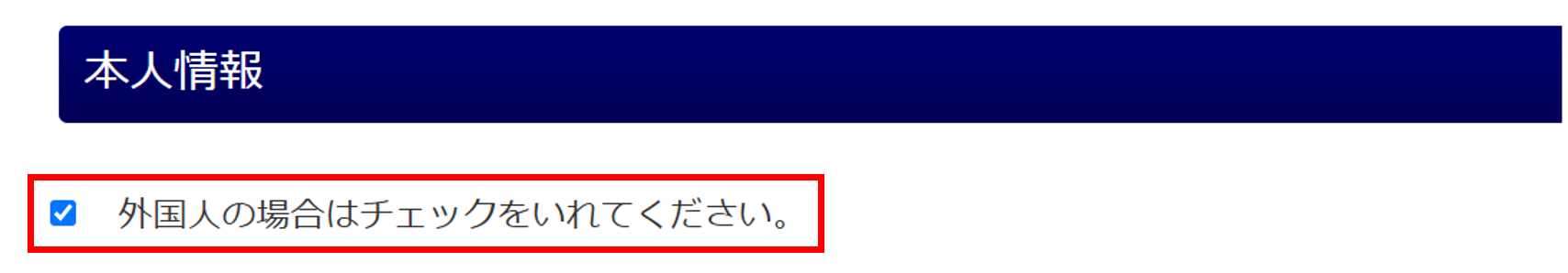 従業員本人が外国人の場合は、「外国人の場合はチェックをいれてください。」にチェックします。