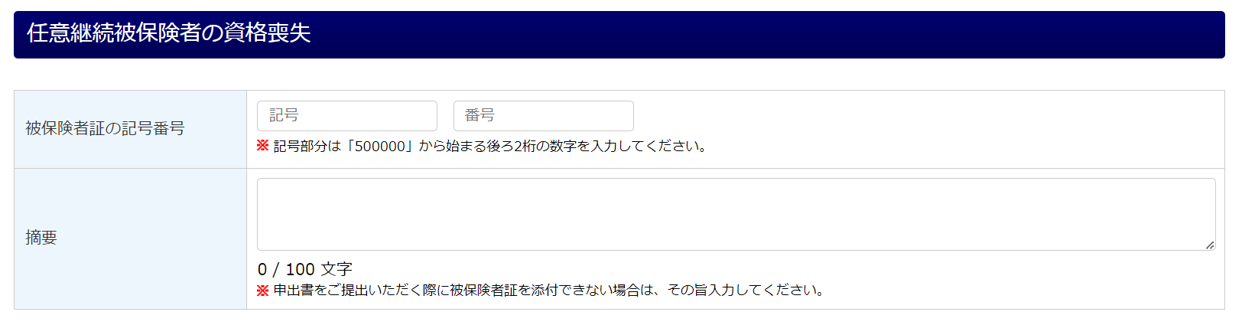 任意継続被保険者の資格喪失各項目を入力します。