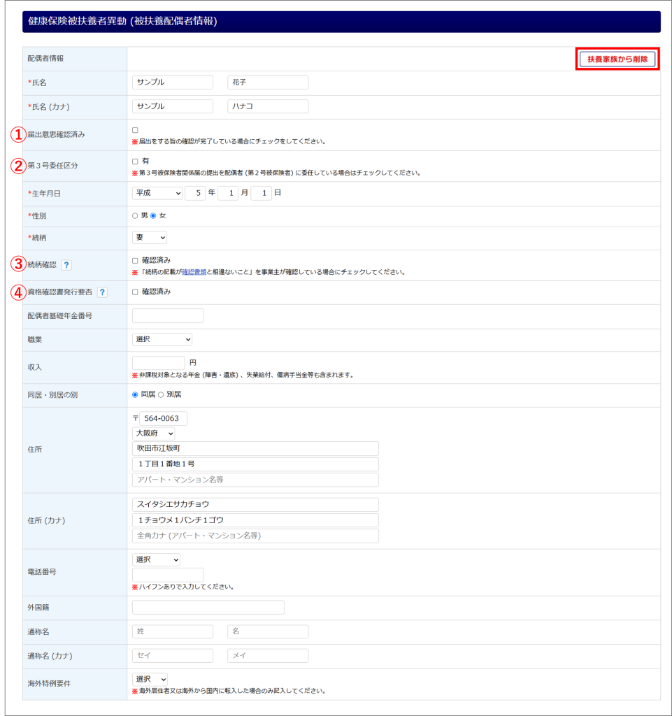健康保険被扶養者異動 (被扶養配偶者情報)