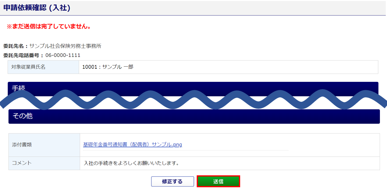 [送信]をクリックします。