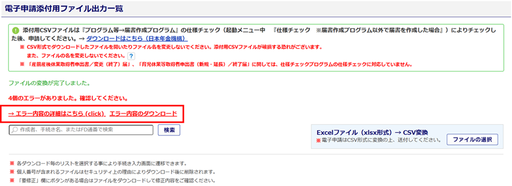 年金機構へ提出用、健康保険組合へ提出用共に、ファイル名称は絶対に変更しないでください。