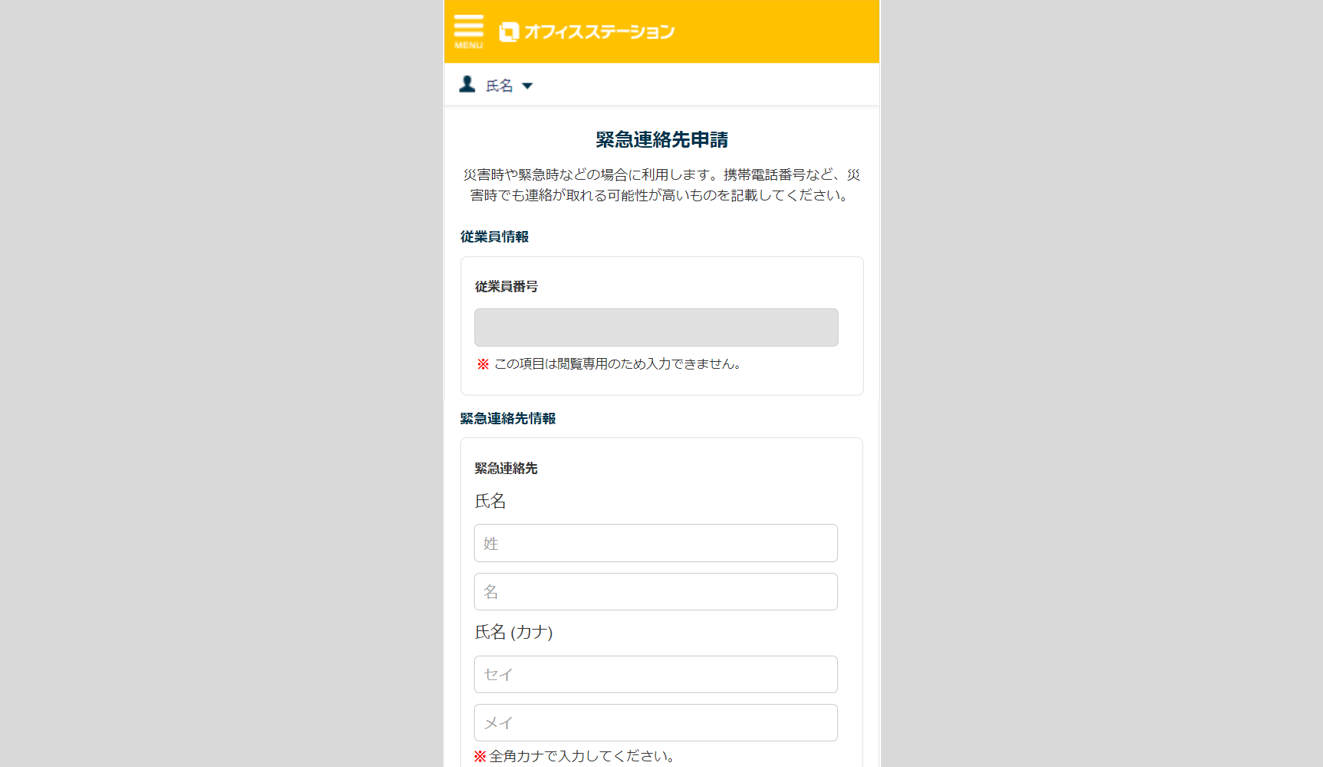 ワークフローの申請フォームに、従業員台帳と紐付く項目「緊急連絡先」を設定して作成し、以下のいずれかを実施すれば、従業員から緊急連絡先情報のみを収集できます。