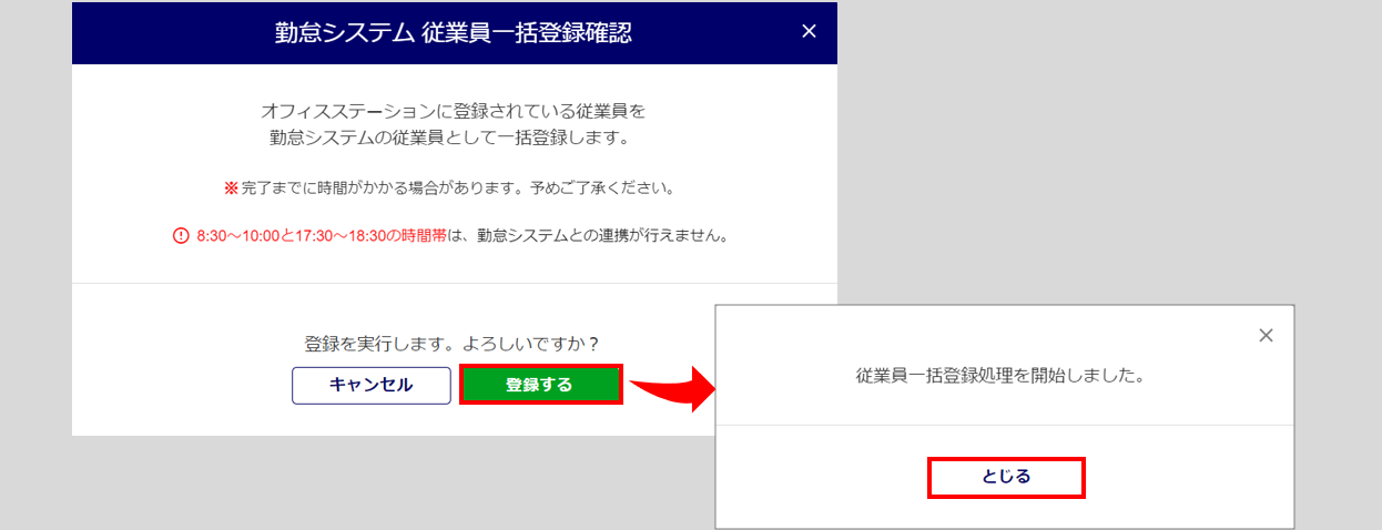 ※オフィスステーションに登録済みの従業員情報への更新には、対応しておりません。また、登録する従業員を選択