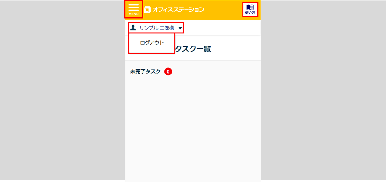 ログアウトの際は、[アカウント名]>[ログアウト]をクリックします。
