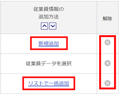 「従業員情報の追加方法」列の[新規追加]や[リストで一括追加]をクリックすると、従業員情報の確認および編集をおこなえます。