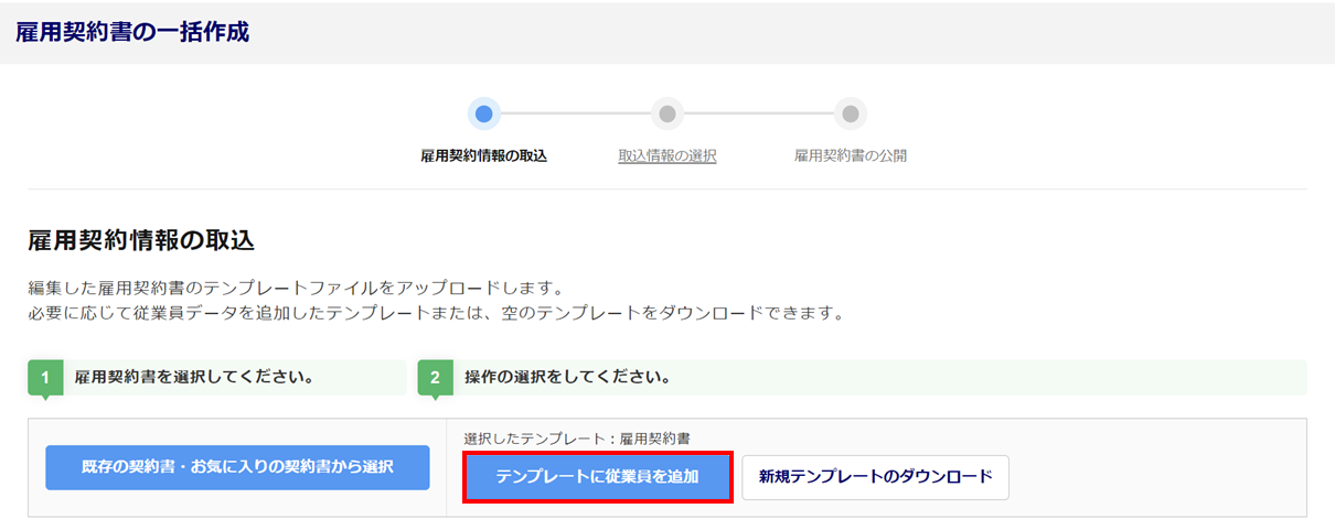 「雇用契約情報の取込」画面が表示されます。