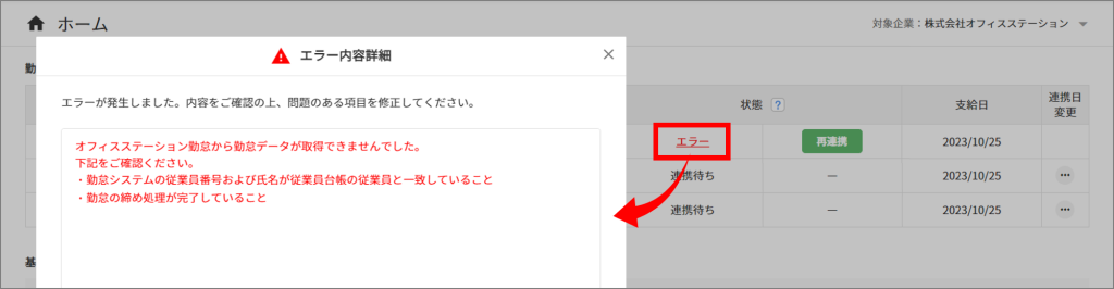 勤怠システムで「勤怠の締め」作業をおこなっていない場合、エラーとなり自動連携されません。