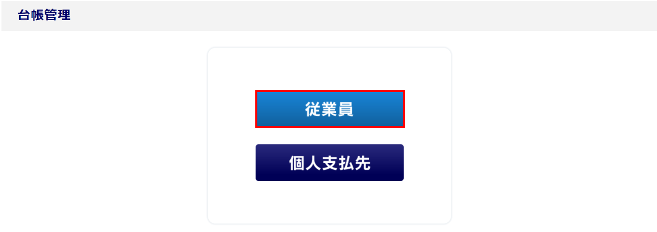 従業員台帳情報の出力作業をおこなう場合は、[従業員台帳一覧]をクリックすると、「台帳管理(従業員)」画面へ移動します。