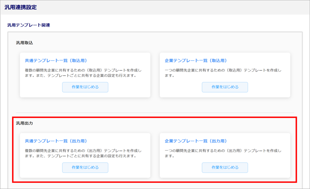 [マスタ管理]>[汎用連携設定]>[汎用出力テンプレート一覧]からも操作は可能です。