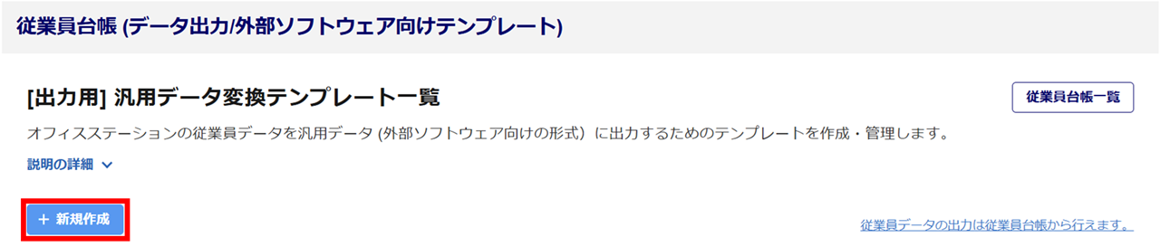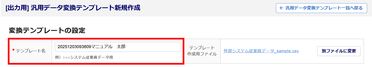 従業員台帳情報の出力時に使用する、汎用データ変換テンプレートを作成します。
