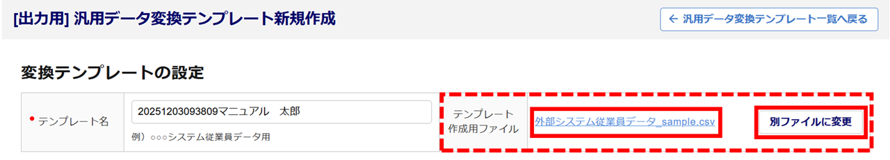 外部システムの従業員データファイルを元に汎用データ変換テンプレートを作成します。