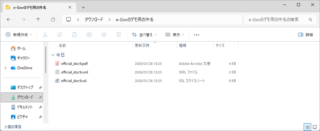 本マニュアル内「公文書やコメントが文字化けしている場合」と同様に、zipファイルを展開し、展開先のフォルダを開きます。