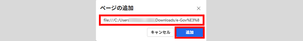 「ページの追加」画面が表示されます。コピーしたURLアドレスを貼り付け、[追加]をクリックします。