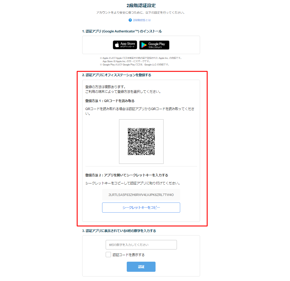 * : QRコードは株式会社デンソーウェーブの登録商標です。 - シークレットキーを入力する方法