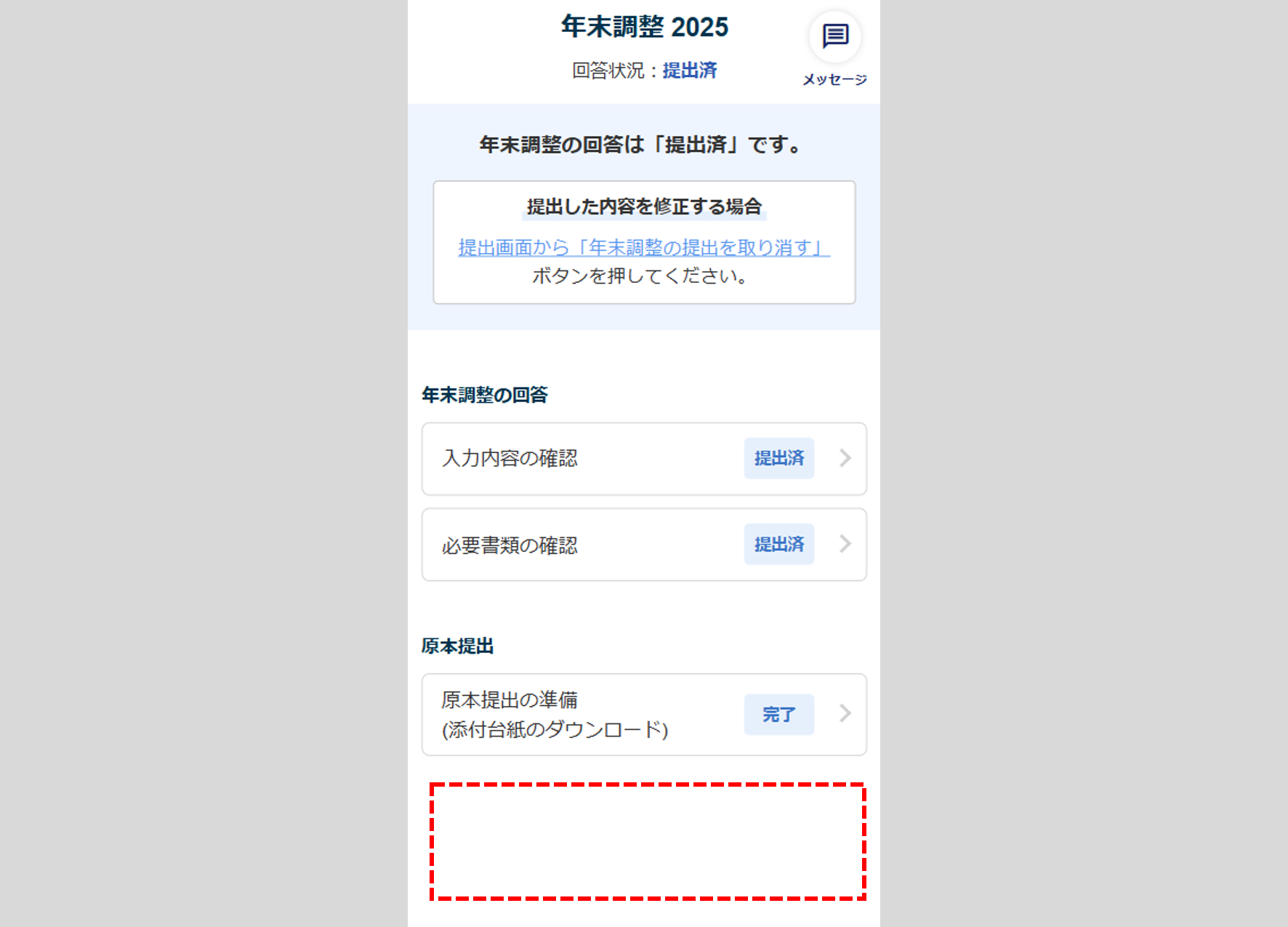 (年末調整タスク提出後の画面)