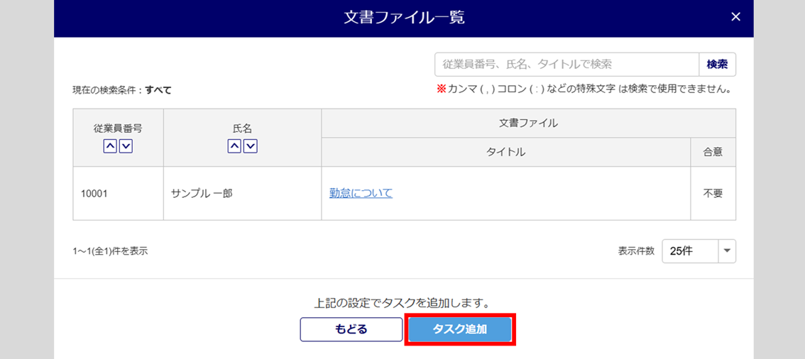 文書ファイルを確認し、[タスク追加]をクリックします。