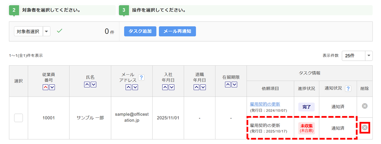 雇用契約の更新タスクの発行