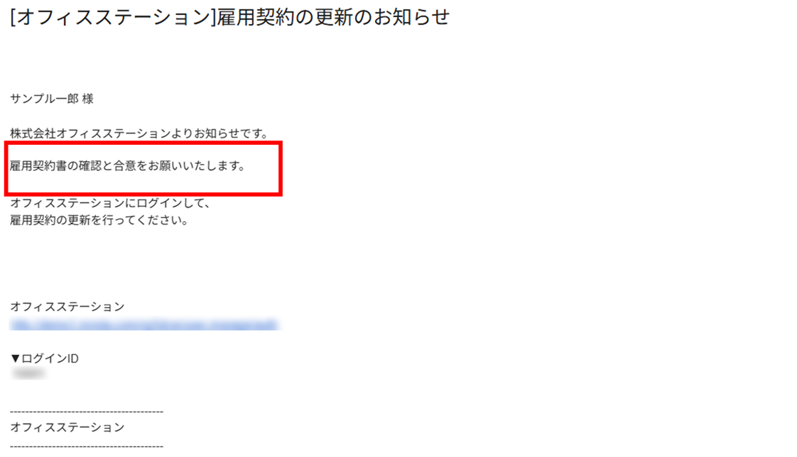 ※「件名」の初期設定は、「雇用契約の更新のお知らせ」です。