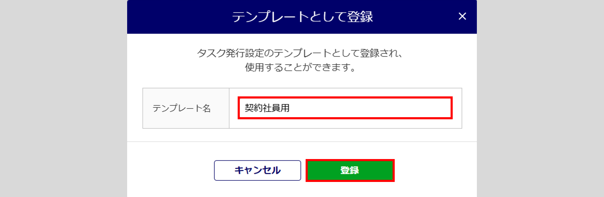 「テンプレート名」を入力し、[登録]をクリックします。