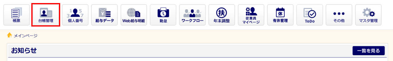[従業員マイページ]>[従業員用マイページ管理]をクリックします。