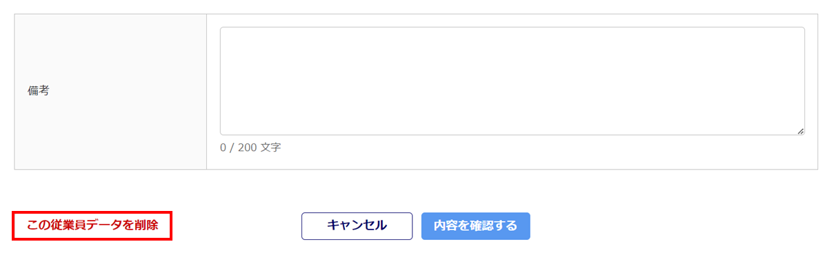 1番下まで画面をスクロールし、[この従業員データを削除]をクリックします。