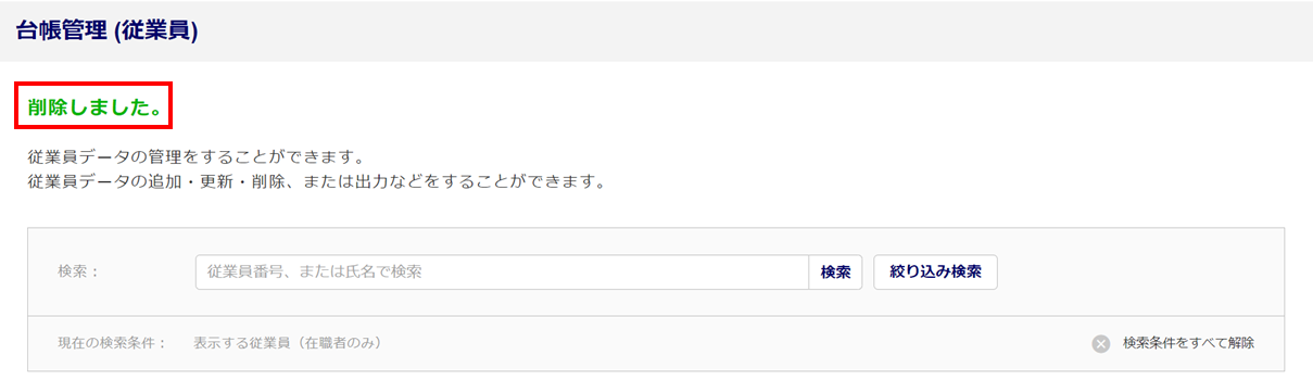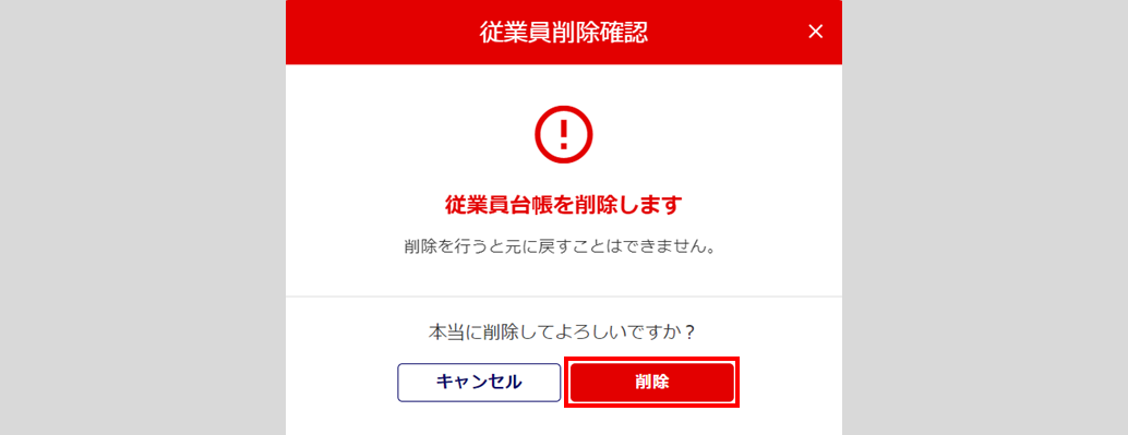 従業員台帳から従業員データを削除した場合、復元することはできません。