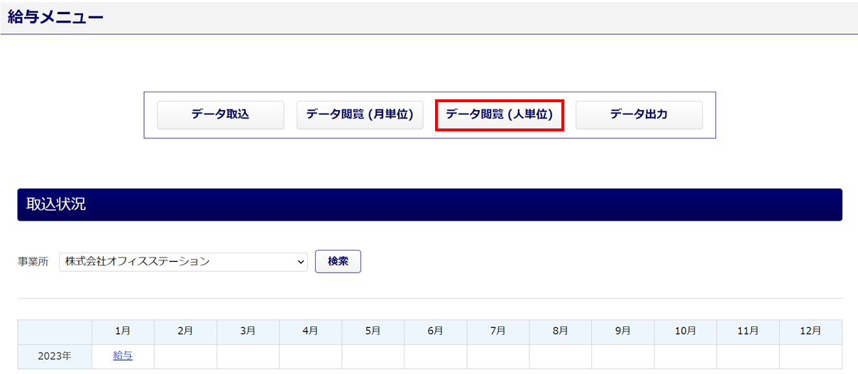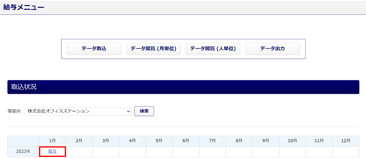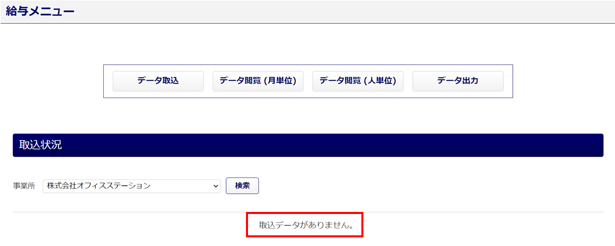 システム画面で直接入力・修正をおこなうには、対象従業員の給与データを、最低ひと月分取り込んでおく必要があります。「給与データ」を取り込んだことがない場合は、まずは「給与データ」を取り込みます。