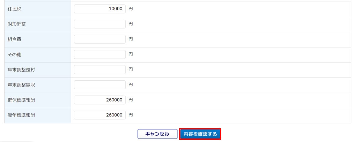 入力後、画面最下部の[内容を確認する]をクリックします。