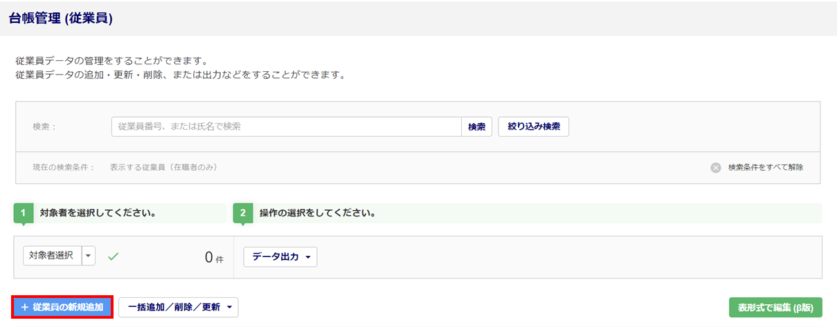 [従業員の新規追加]をクリックします。