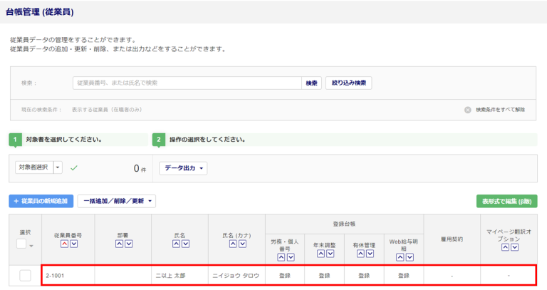 [台帳管理]>[従業員]をクリックします。