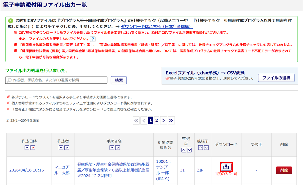 「個人番号」の入力がある場合、「基礎年金番号」が入力されている状態でもCSVファイルへの変換時に削除されます。