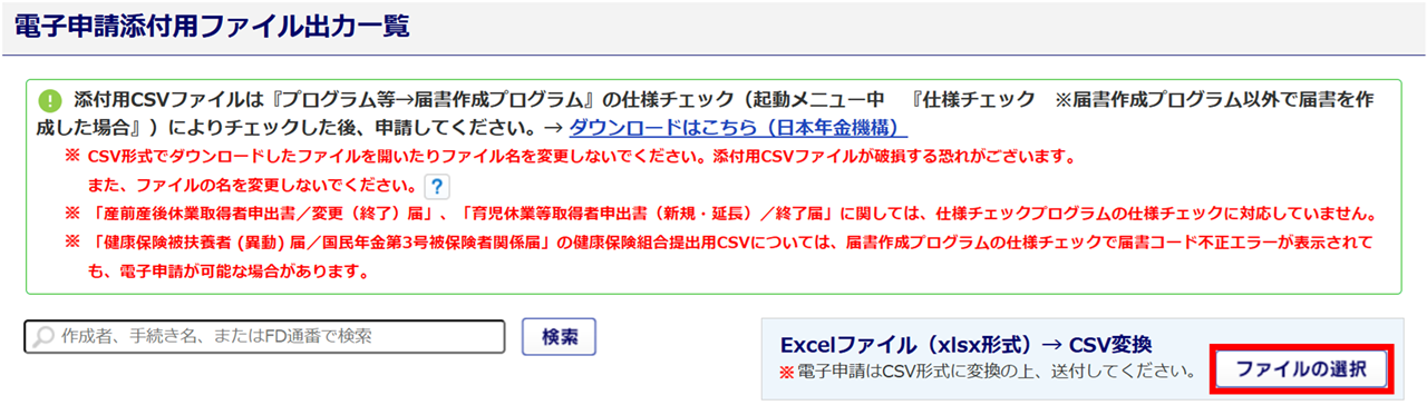 添付用CSVファイルの電子申請