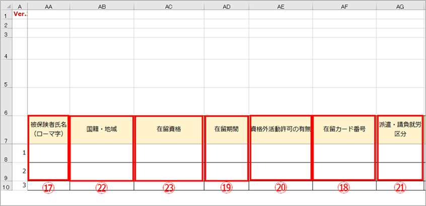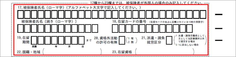 被保険者が外国人の場合は、17欄から23欄までの項目を設定します。