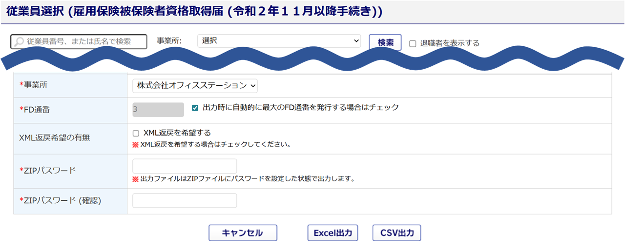 「雇用保険被保険者資格取得届 連記式 (外部CSVファイル添付方式)」の手続き時に添付するCSVファイルをオフィスステーションにて作成する方法について、ご説明します。