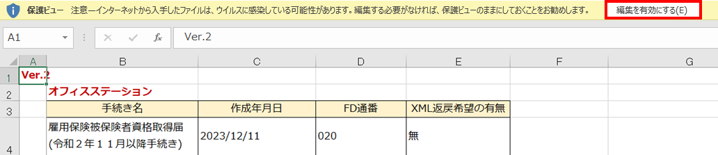 Excelファイルを開き、[編集を有効にする]をクリックします。