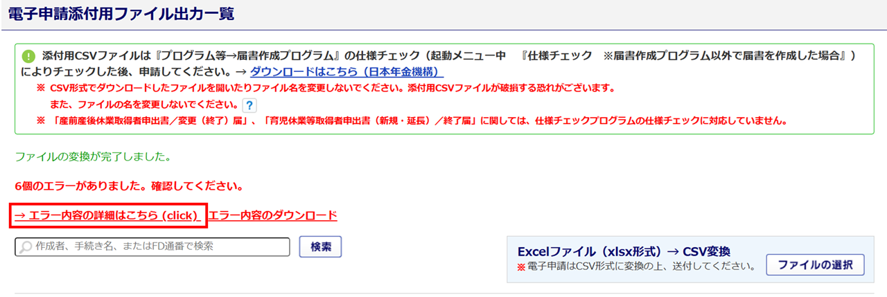 CSVファイルの作成が完了したら、日本年金機構が提供している「届書作成プログラム」の仕様チェックをおこなうことをお勧めしております。操作方法は、以下の関連記事をご参照ください。