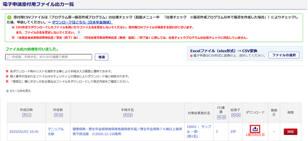 年金機構へ提出用、健康保険組合へ提出用共に、ファイル名称は絶対に変更しないでください