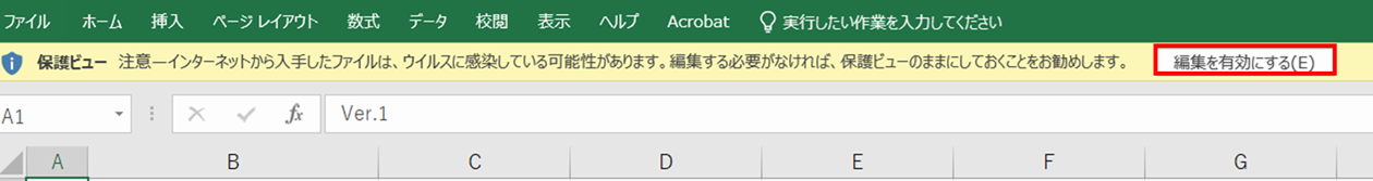 Excelファイルを開き、[編集を有効にする]をクリックします。