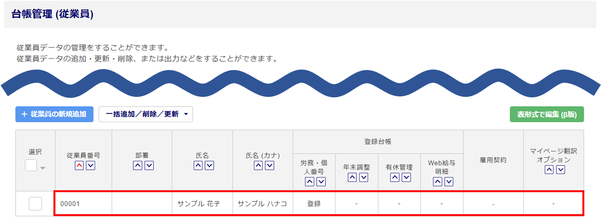 従業員台帳へ反映していない場合