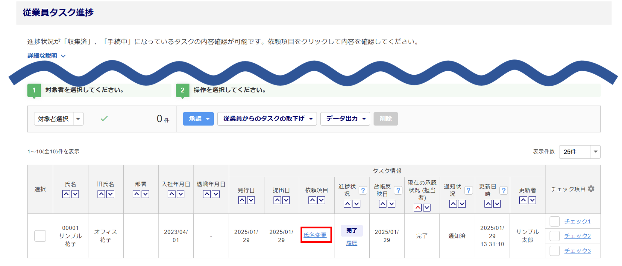 従業員から収集したタスク情報の確認