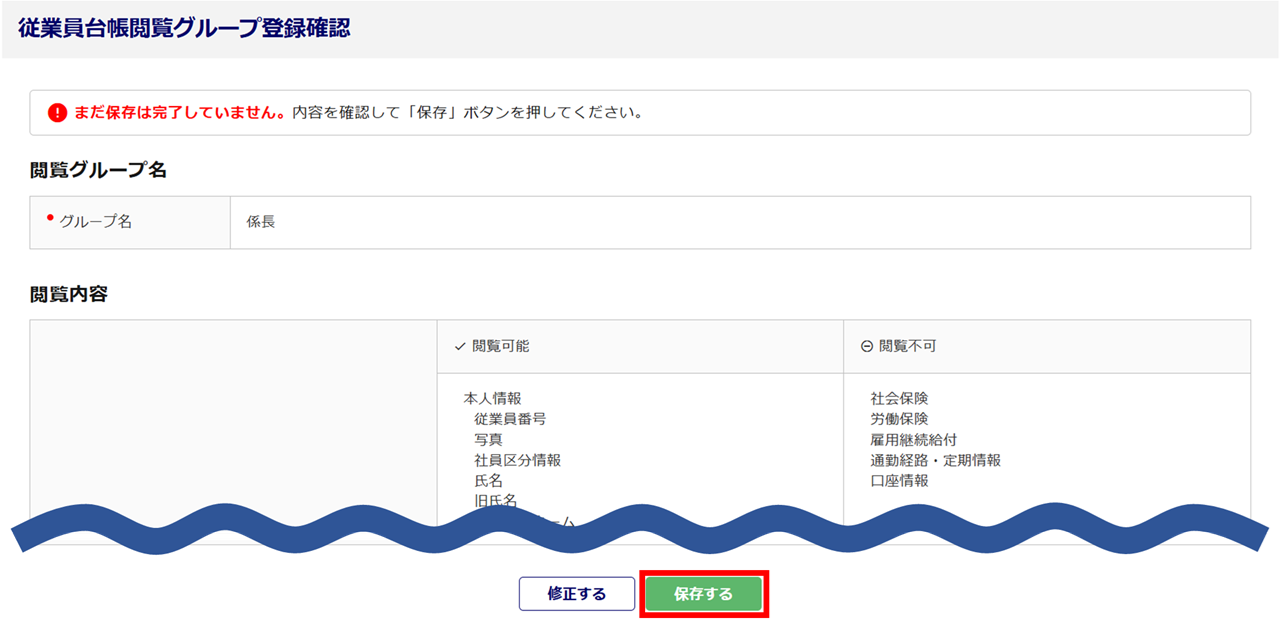 以上で、従業員台帳の閲覧制限の設定は完了です。