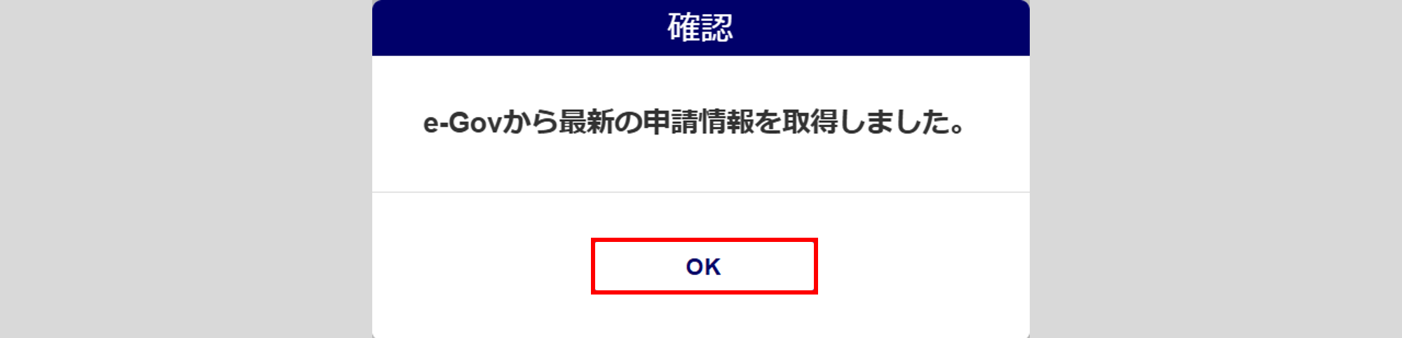 「状況照会」画面にて、「確認」ウィンドウが表示されたら、[OK]をクリックします。