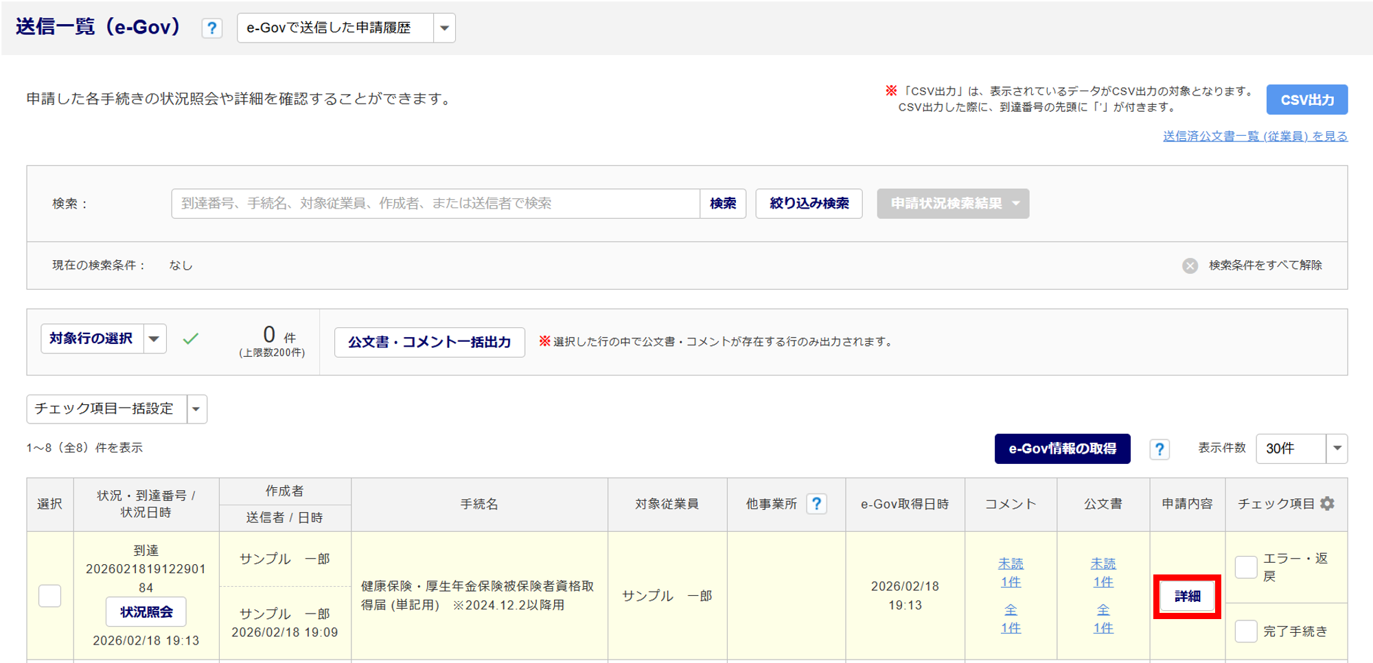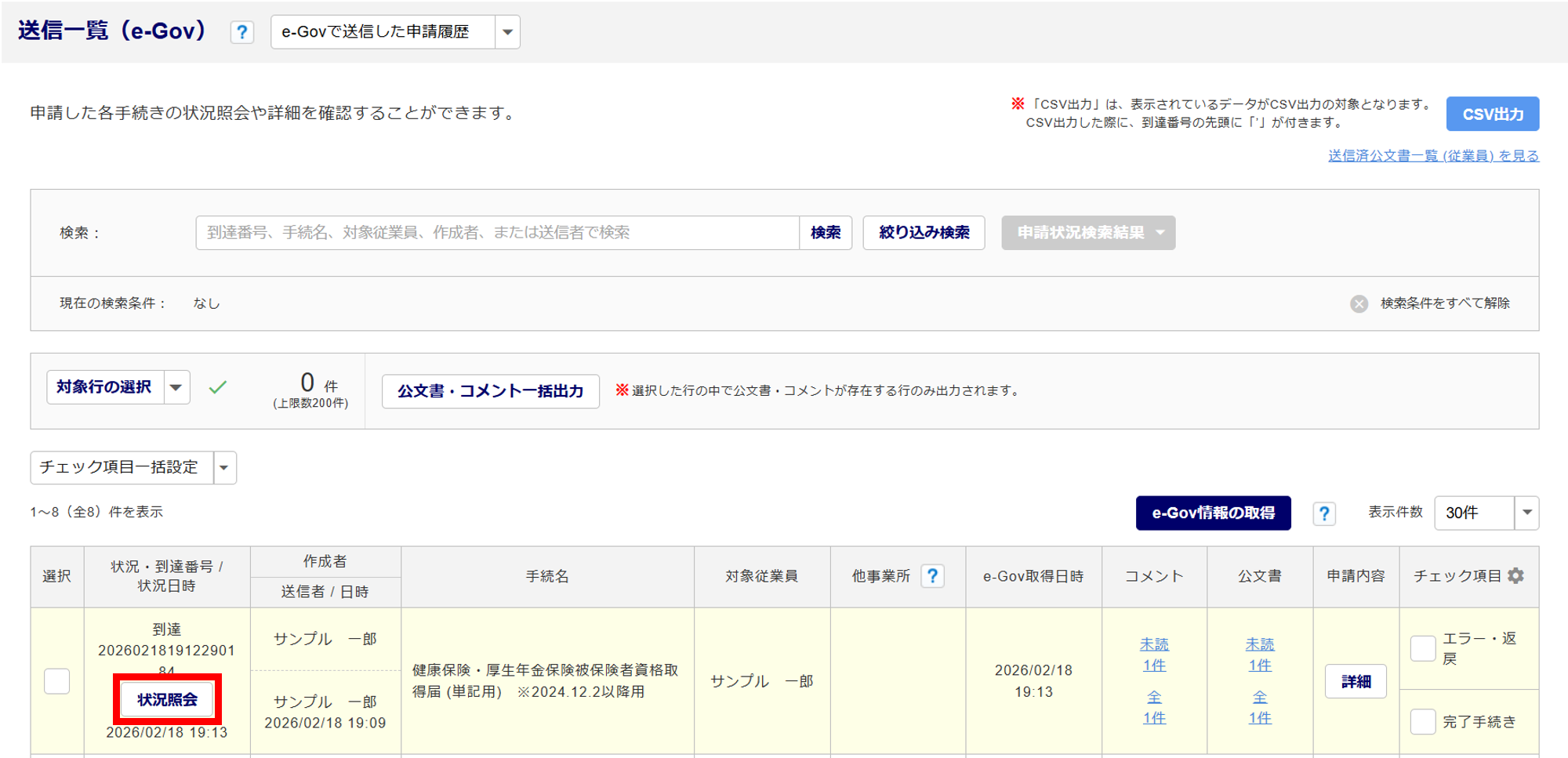 [送信一覧]>[e-Gov]もしくは[マイナポータル]をクリックします。