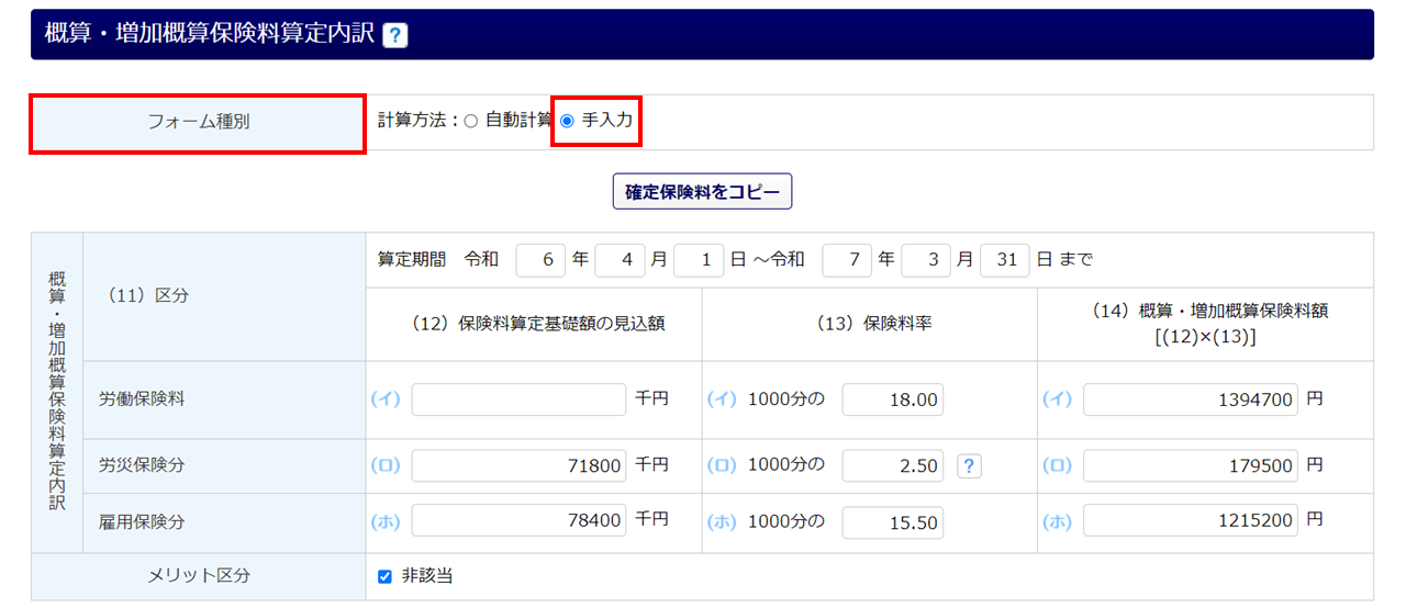 「概算・増加概算保険料算定内訳」を手入力することは可能です。
