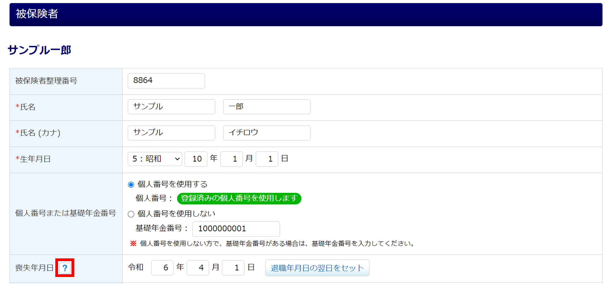 「喪失年月日」項目については、システム画面の[?]をご参照ください。