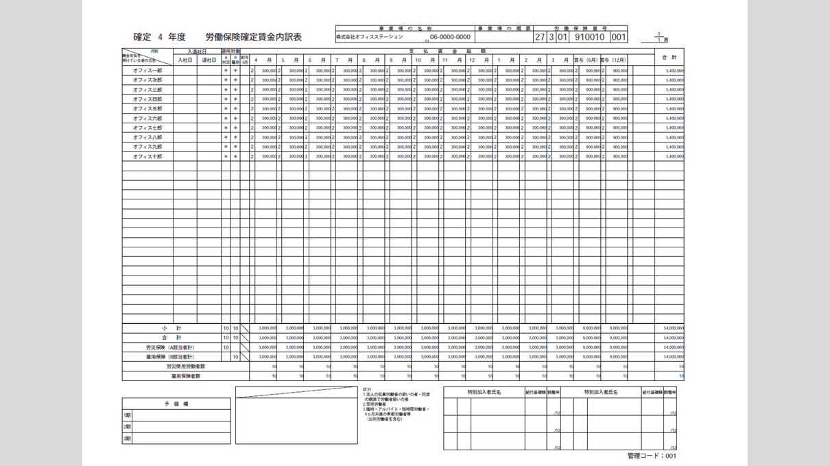 労働保険料確定賃金内訳表 サンプル
