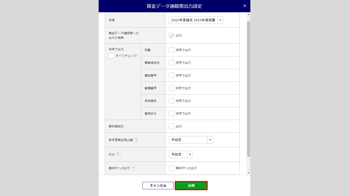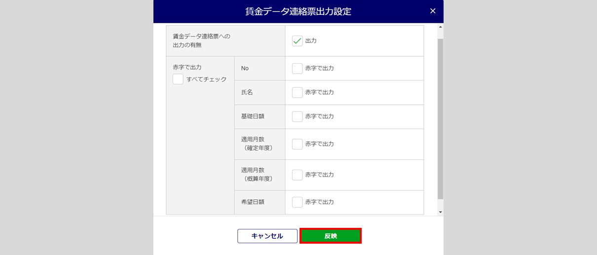 賃金データ連絡票出力設定