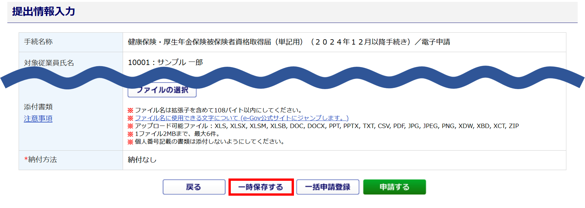 申請データの一時保存