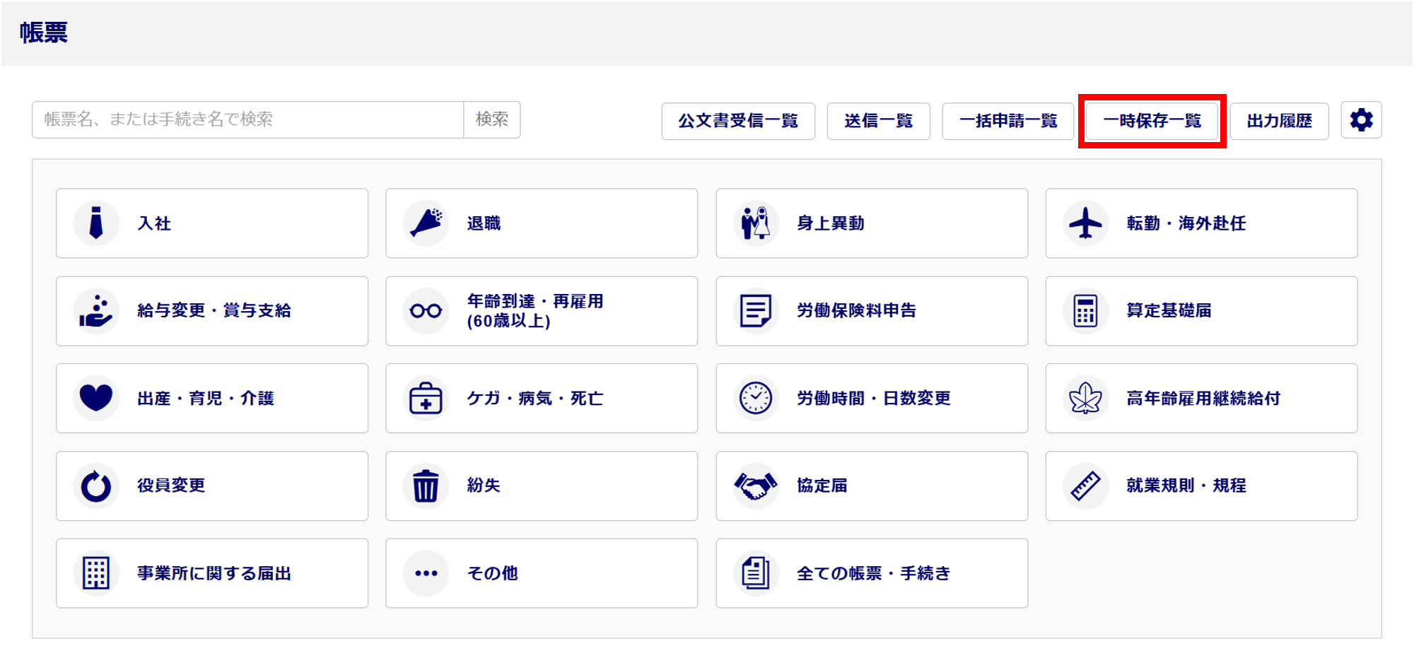 [一時保存一覧]をクリックします。