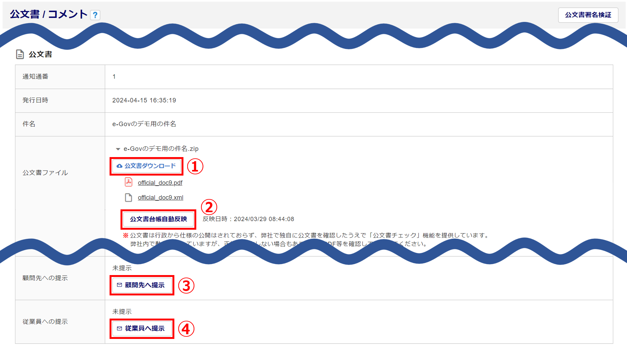 公文書の情報が表示されます。